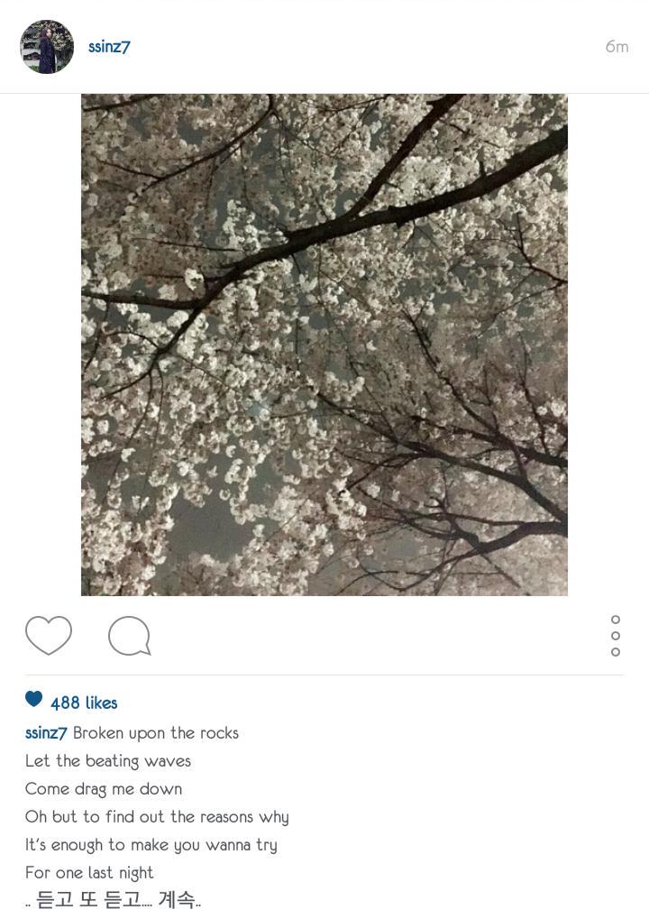 Shinhye's caption is the lyrics of ONE LAST NIGHT by VAULTS while Jongsuk's wasSpring is Gone b Chance an OST of the SBS current Drama THE GIRL WHO SEES SMELLS (seems like jongsuk is watching that drama which kinda explains the post)