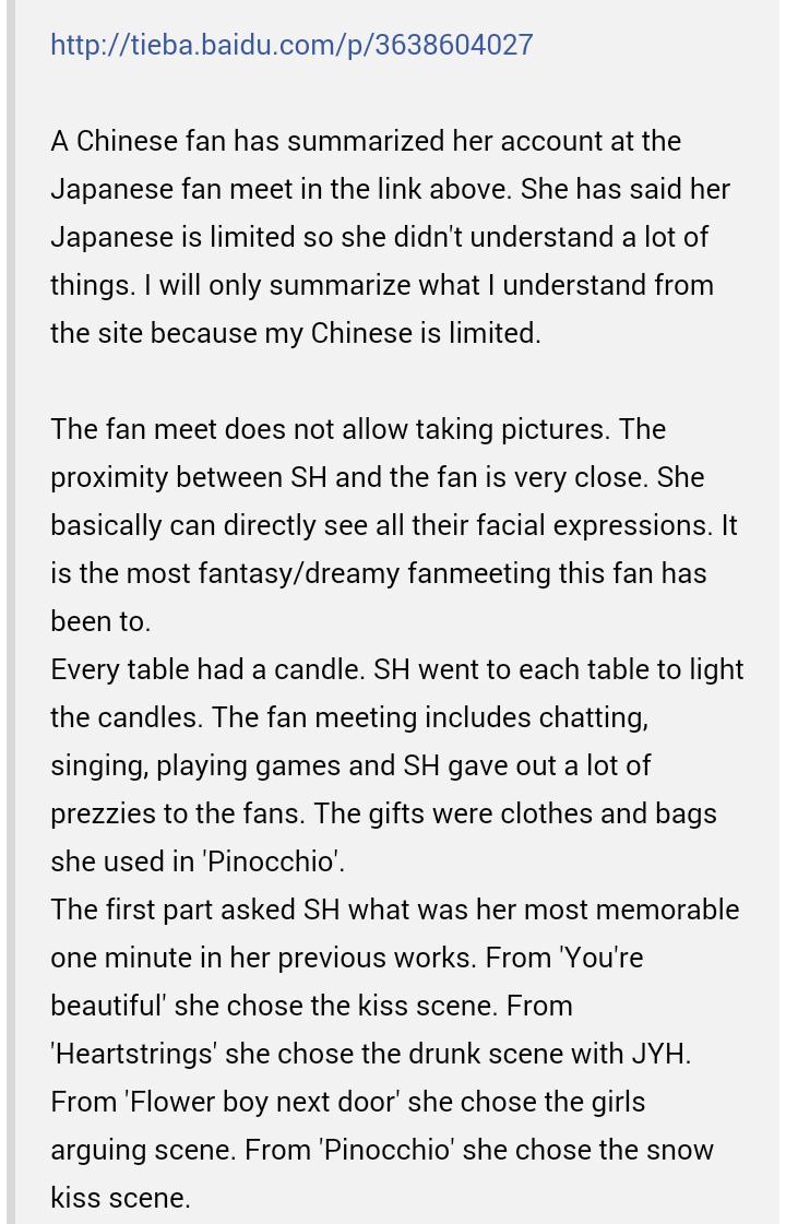 From SALT IG update.... Shinhye's fan meeting in Japan